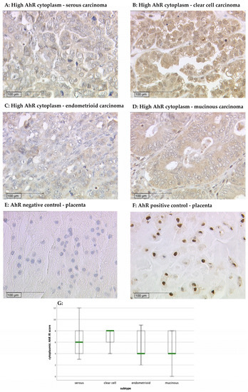 2.1. Highest Cytoplasmic AhR Staining in Clear Cell Ovarian Cancer