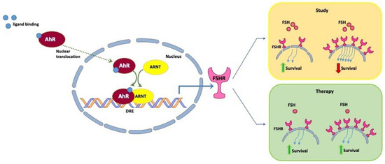 Deuster, E.; Mayr, D.; Hester, A.; Kolben, T.; Zeder-Göß, C.; Burges, A.; Mahner, S.; Jeschke, U.; Trillsch, F.; Czogalla, B. Correlation of the Aryl Hydrocarbon Receptor with FSHR in Ovarian Cancer Patients. Int. J. Mol. Sci. 2019, 20, 2862. https://doi.org/10.3390/ijms20122862