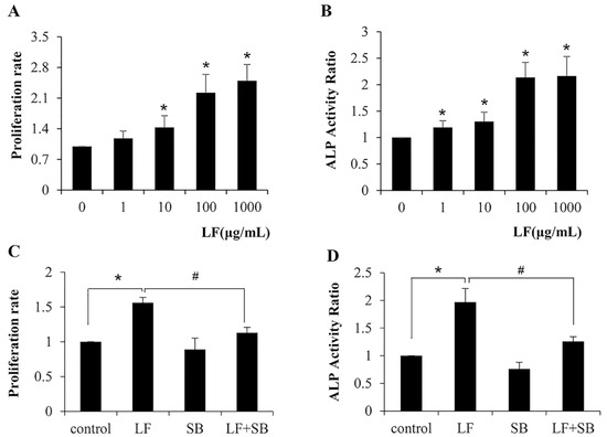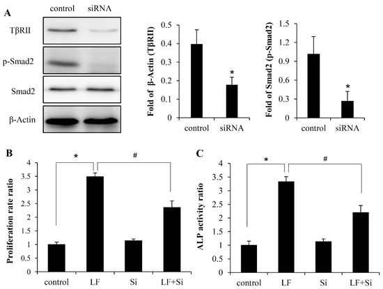 2.1. TGF-β Pathway Is Required for LF-Induced Proliferation and Differentiation in Mesenchymal Stem Cells C3H10T1/2