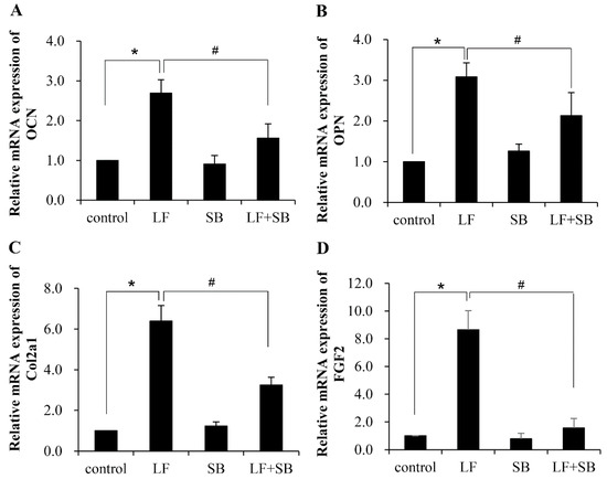 2.2. TGF-β Pathway Is Involved in the LF-Induced Expression of Gene Markers for the Osteogenic Activity in Mesenchymal Stem Cells