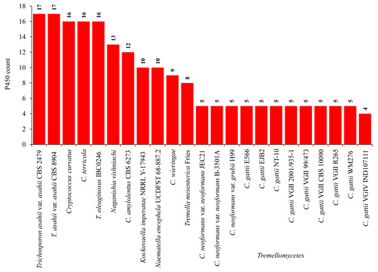 Despite the importance of CYPs as drug targets, to date, the CYP repertoire in cryptococcal species or in other species of Tremellomycetes has not been elucidated. A few studies reported the CYP contingent of C. neoformans and T. mesenterica Fries with the purpose of comparing the CYP profiles with wood-degrading fungi [22,36,37]. Thus, in this study we present a comparative analysis of CYPs in species of Tremellomycetes.