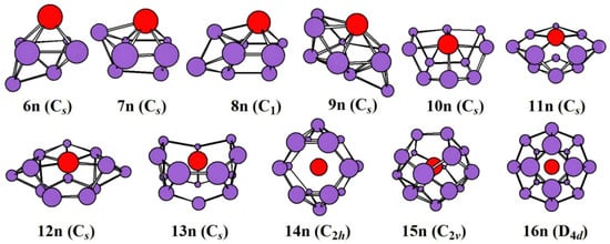 - Lu, J.; Nagase, S. Structural and Electronic Properties of Metal-Encapsulated Silicon Clusters in a Large Size Range. Phys. Rev. Lett. 2003, 90, 115506. [Google Scholar] [CrossRef] [PubMed]