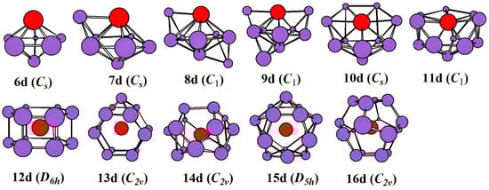 - Wu, X.; Zhou, S.; Huang, X.M.; Chen, M.; King, R.B.; Zhao, J.J. Revisit of Large-Gap Si16 Clusters Encapsulating Group-IV Metal Atoms (Ti, Zr, Hf). J. Comput. Chem. 2018, 39, 2268–2272. [Google Scholar] [CrossRef] [PubMed]