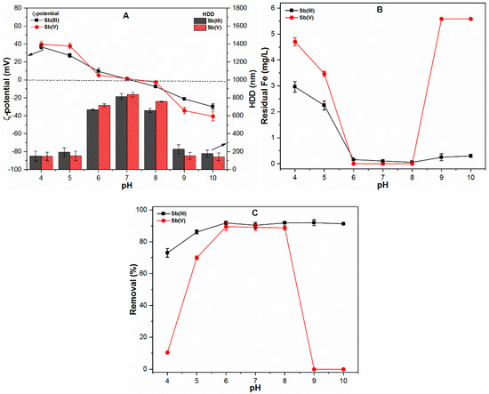 2.1. Effect of pH on Physico-chemical Properties of Precipitates and Sb Removal