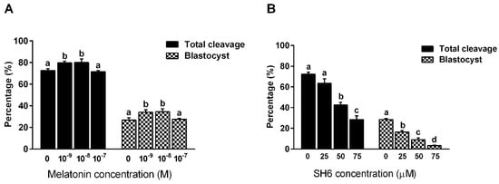 2.2. Melatonin Addition During IVM Antagonizes the Anti-Developmental Effect of SH6