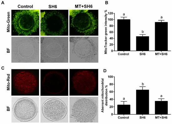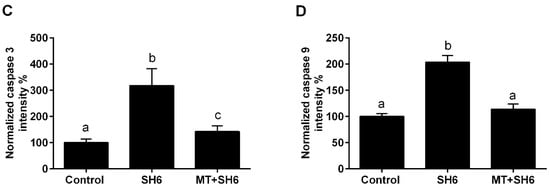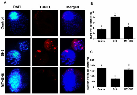 2.4. Melatonin Reduces the Oxidative Stress and Apoptosis in SH6-Treated Oocytes