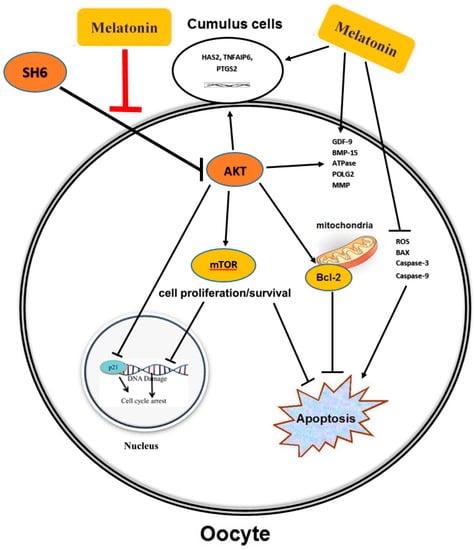 El Sheikh, M.; Mesalam, A.; Mesalam, A.A.; Idrees, M.; Lee, K.-L.; Kong, I.-K. Melatonin Abrogates the Anti-Developmental Effect of the AKT Inhibitor SH6 in Bovine Oocytes and Embryos. Int. J. Mol. Sci. 2019, 20, 2956. https://doi.org/10.3390/ijms20122956