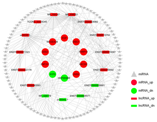 2.6. lncRNA–miRNA–mRNA Network Analysis