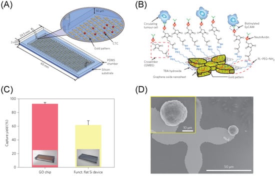- Yoon, H.J.; Kim, T.H.; Zhang, Z.; Azizi, E.; Pham, T.M.; Paoletti, C.; Lin, J.; Ramnath, N.; Wicha, M.S.; Hayes, D.F.; et al. Sensitive capture of circulating tumour cells by functionalized graphene oxide nanosheets. Nat. Nanotechnol. 2013, 8, 735–741. [Google Scholar] [CrossRef]