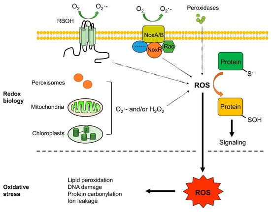 - Kar, R.K. ROS Signaling: Relevance with Site of Production and Metabolism of ROS. In Reactive Oxygen Species and Oxidative Damage in Plants under Stress; Gupta, D.K., Palma, J.M., Corpas, F.J., Eds.; Springer International Publishing: Berlin, Germany, 2015; pp. 117–118. [Google Scholar] [CrossRef]