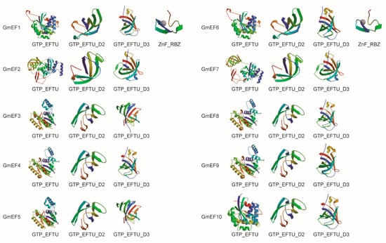 2.2. The Predicted Structures of Domains in Soybean EF1αs