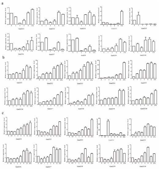 | Genes | GmEF1 | GmEF2 | GmEF3 | GmEF4 | GmEF5 | GmEF6 | GmEF7 | GmEF8 | GmEF9 | GmEF10 |