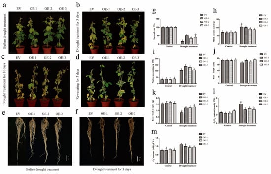 2.8. Overexpression of GmEF4 Significantly Improved Drought Tolerance in Soybean Hairy Roots