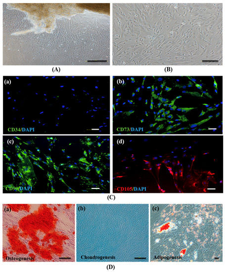 - Dominici, M.; Le Blanc, K.; Mueller, I.; Slaper-Cortenbach, I.; Marin, F.; Krause, D.; Deans, R.; Keating, A.; Prockop, D.; Horwitz, E. Minimal criteria for defining multipotent mesenchymal stromal cells. The international society for cellular therapy position statement. Cytotherapy 2006, 8, 315–317. [Google Scholar] [CrossRef] [PubMed]