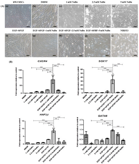 2.3. Effect of NaBu on Epigenetic Statuses and Endodermal Differentiation of hWJ-MSCs