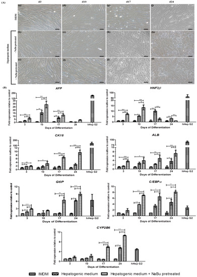 2.4. Effect of NaBu on Hepatogenic Differentiation of hWJ-MSCs