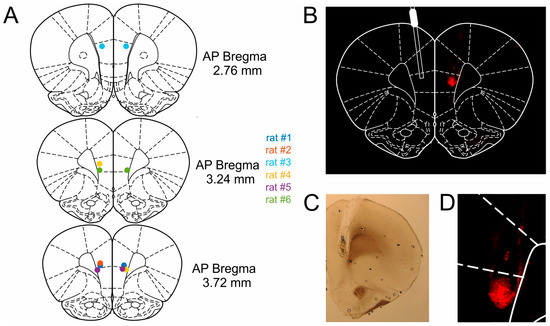 - Paxinos, G.; Watson, C. The Rat Brain in Stereotaxic Coordinates, 7th ed.; Academic Press: San Diego, CA, USA, 2013. [Google Scholar]