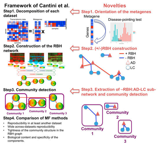 - Brunet, J.-P.; Tamayo, P.; Golub, T.R.; Mesirov, J.P. Metagenes and molecular pattern discovery using matrix factorization. Proc. Natl. Acad. Sci. USA 2004, 101, 4164–4169. [Google Scholar] [CrossRef]