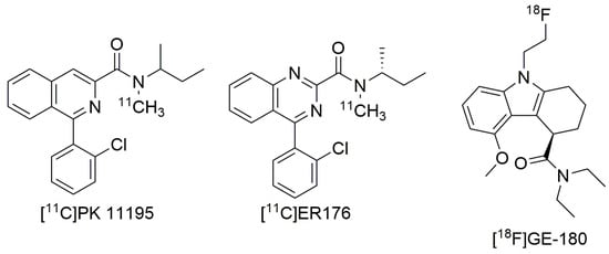 Structures of [11C]PK 11195, [11C]ER176, and [18F]GE-180.