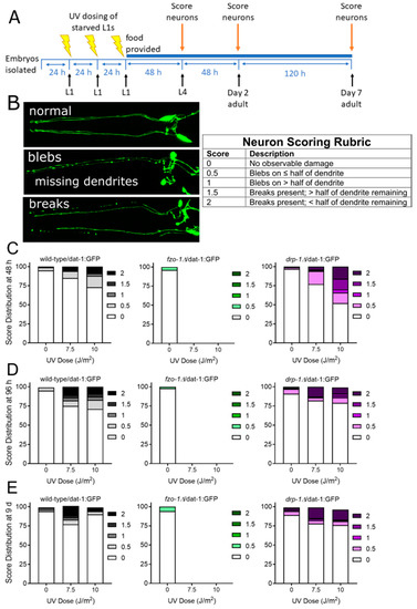 Hartman, J.H.; Gonzalez-Hunt, C.; Hall, S.M.; Ryde, I.T.; Caldwell, K.A.; Caldwell, G.A.; Meyer, J.N. Genetic Defects in Mitochondrial Dynamics in Caenorhabditis elegans Impact Ultraviolet C Radiation- and 6-hydroxydopamine-Induced Neurodegeneration. Int. J. Mol. Sci. 2019, 20, 3202. https://doi.org/10.3390/ijms20133202