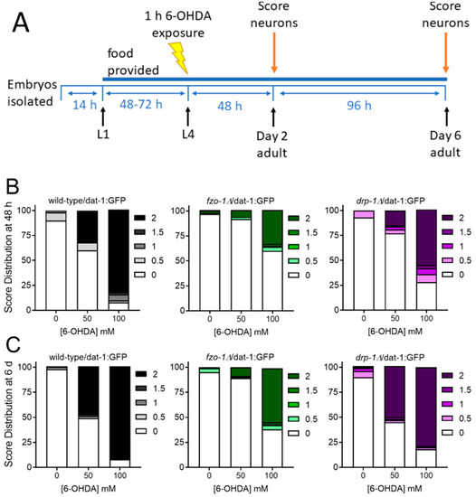 2.1.3. Mitochondrial Fission and Fusion Mutants are Protected from 6-OHDA-Induced Neurodegeneration