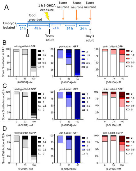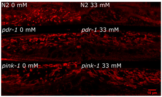 2.2.2. Mutants Deficient in pdr-1 Are More Sensitive to 6-OHDA-Induced Neurodegeneration, but pink-1 Mutants Are Protected