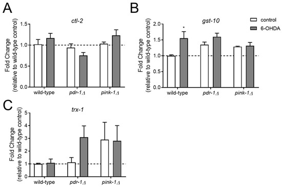 2.3.1. Pink-1 Mutants do not Differentially Express Antioxidant Genes at Baseline or in Response to 6-OHDA
