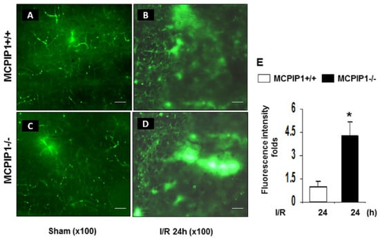 2.2. Extravasation of FITC-Dextran Is Markedly Increased in the Brains of MCPIP1–/– Mice Subjected to Transient Focal I/R Injury