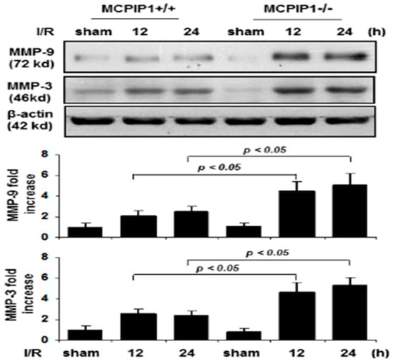 2.3. Matrix Metalloproteinase Expression in MCPIP1–/–Mice Subjected to Transient Focal I/R Injury