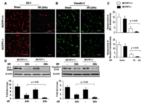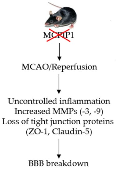 Jin, Z.; Liang, J.; Li, J.; Kolattukudy, P.E. Absence of MCP-induced Protein 1 Enhances Blood–Brain Barrier Breakdown after Experimental Stroke in Mice. Int. J. Mol. Sci. 2019, 20, 3214. https://doi.org/10.3390/ijms20133214