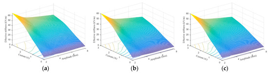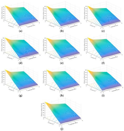 Testing results in [21] show that the equivalent stiffness and damping are the functions of applied current I and excitation amplitude A. Therefore, the relationship between equivalent stiffness and current and amplitude can be expressed as follows: