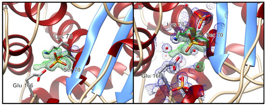 - Tassoni, R.; Blok, A.; Pannu, N.S.; Ubbink, M. New Conformations of Acylation Adducts of Inhibitors of β-Lactamase from Mycobacterium tuberculosis. Biochemistry 2019, 58, 997–1009. [Google Scholar] [CrossRef] [PubMed]