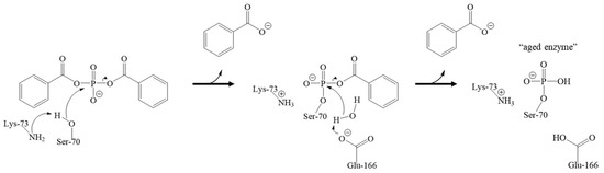 - Majumdar, S.; Pratt, R.F. Inhibition of Class A and C β-Lactamases by Diaroyl Phosphates. Biochemistry 2009, 48, 8285–8292. [Google Scholar] [CrossRef]