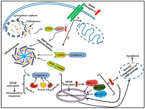| NAIP | NLR family apoptosis inhibitory protein | <0.05 | 2.27 | ↑ | Anti-Apoptotic/Negative Regulation of Apoptosis |