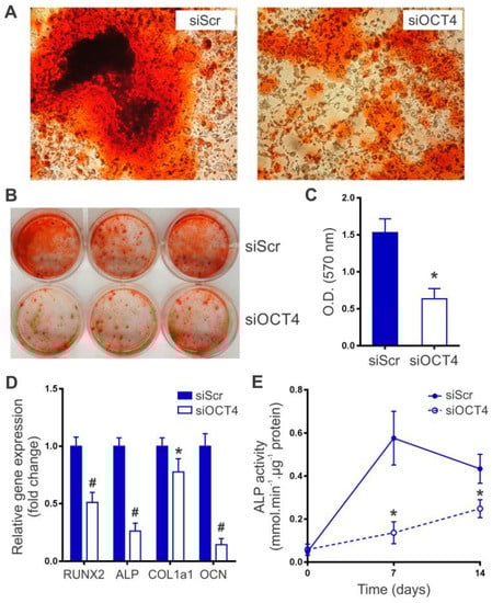2.2. OCT4 Silencing Impairs MSC Osteogenic Differentiation
