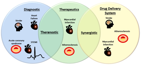 Atherosclerosis is a common cause for a variety of CVD, including MI and ischemic stroke [165]. Due to the inflammatory nature and increased vascular permeability of atherosclerotic plaques, various nanoparticles have been designed to target atherosclerotic plaques for diagnosis or treatment purposes [166]. Despite obvious advantages (e.g., decreased dose with the same therapeutic effect) and substantial benefits (e.g., decreased number of unstable plaques) offered by the clinically used nanoparticles, their synthetic nature also creates certain limitations, such as potential toxicity in vivo [167]. In this regard, EVs may offer an attractive alternative.