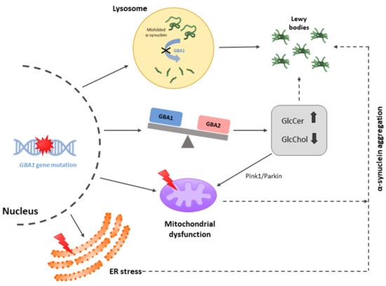 - Migdalska-Richards, A.; Schapira, A.H.V.V. The relationship between glucocerebrosidase mutations and Parkinson disease. J. Neurochem. 2016, 139, 77–90. [Google Scholar] [CrossRef]