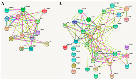 - Grünblatt, E.; Zander, N.; Bartl, J.; Jie, L.; Monoranu, C.-M.; Arzberger, T.; Ravid, R.; Roggendorf, W.; Gerlach, M.; Riederer, P. Comparison analysis of gene expression patterns between sporadic Alzheimer’s and Parkinson’s disease. J. Alzheimers. Dis. 2007, 12, 291–311. [Google Scholar] [CrossRef] [PubMed]