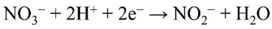 The enzymes catalyzing these reactions are generally called “nitrate reductases”. Based on their function, structure, and location, three different types of nitrate reductases are distinguished: Periplasmic nitrate reductase (Nap), respiratory nitrate reductase (Nar: membrane enzyme), and assimilatory nitrate reductase (Nas: cytoplasmic) [51,52,53]. Essentially, the three enzymes catalyze the same reaction (Figure 3) with different purposes: Nas catalyze the first reaction in the assimilatory nitrate reduction, Nap are usually involved in dissimilatory processes, and Nar catalyze the first reaction in denitrification.