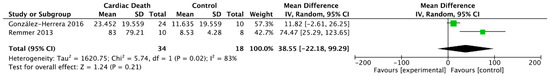 Forest plot of cTn I in pericardial fluid between cardiac death and control groups.