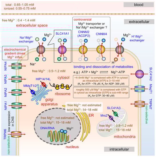 - Romani, A.M.P. Cellular magnesium homeostasis. Arch. Biochem. Biophys. 2011, 512, 1–23. [Google Scholar] [CrossRef] [PubMed]