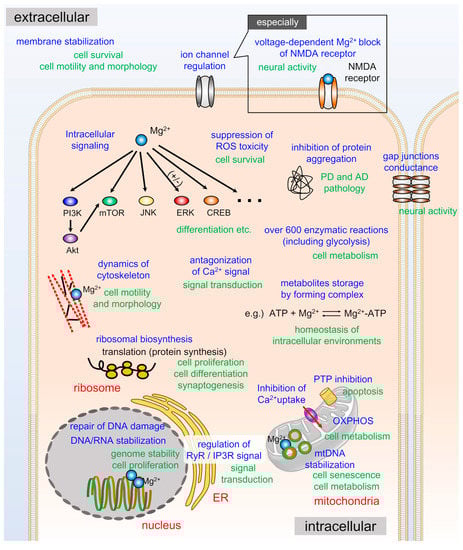 - Jia, S.; Liu, Y.; Shi, Y.; Ma, Y.; Hu, Y.; Wang, M.; Li, X. Elevation of Brain Magnesium Potentiates Neural Stem Cell Proliferation in the Hippocampus of Young and Aged Mice. J. Cell. Physiol. 2016, 231, 1903–1912. [Google Scholar] [CrossRef] [PubMed]