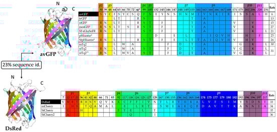 - Kremers, G.-J.; Gilbert, S.G.; Cranfill, P.J.; Davidson, M.W.; Piston, D.W. Fluorescent proteins at a glance. J. Cell Sci. 2011, 124, 2676. [Google Scholar] [CrossRef][Green Version]