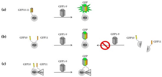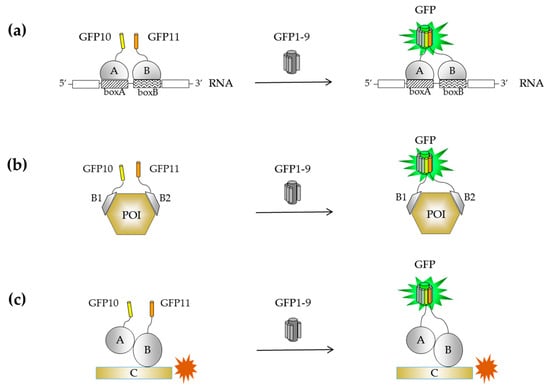 - Romei, M.G.; Boxer, S.G. Split Green Fluorescent Proteins: Scope, Limitations, and Outlook. Annu. Rev. Biophys. 2019, 48, 19–44. [Google Scholar] [CrossRef] [PubMed]