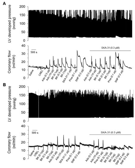 - Mishra, R.C.; Belke, D.; Wulff, H.; Braun, A.P. SKA-31, a novel activator of SK(Ca) and IK(Ca) channels, increases coronary flow in male and female rat hearts. Cardiovasc. Res. 2013, 97, 339–348. [Google Scholar] [CrossRef] [PubMed]