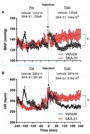 2.4. Effect of Acute SKA-31 Administration on Systemic Blood Pressure in SHRs