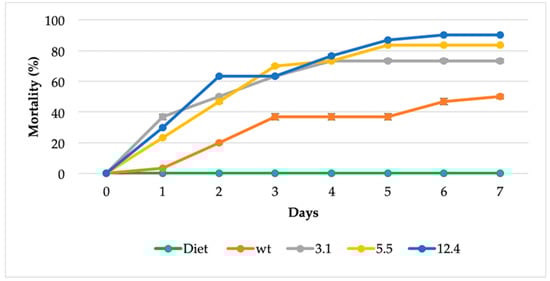 4.14. Bioassays for Toxicity to Insects