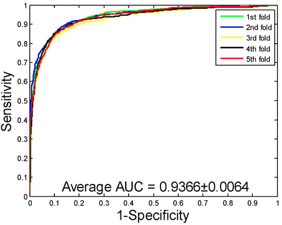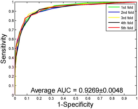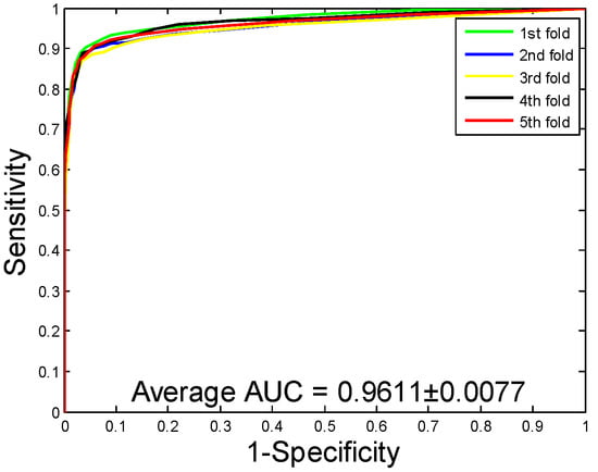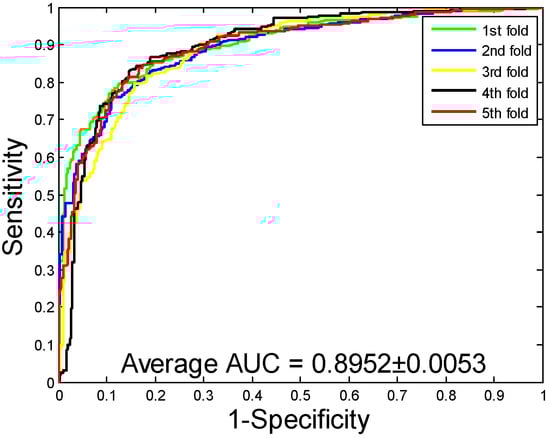 5-fold cross-validation results obtained using the proposed method on three datasets.