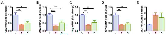 2.2. Expression Levels of Molecules Associated with T Cell Differentiation and Function Were Reduced after Social Defeat