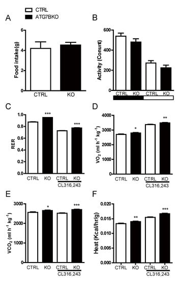 2.3. Body Weight Reduction in ATG7B KO Mice Is Due to Enhanced Energy Expenditure
